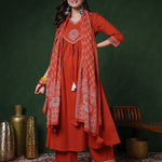 Rayon Calf Length Solid 3/4 Sleeves V-Neck Semi-Flared Kurta Suit Set With Dupatta