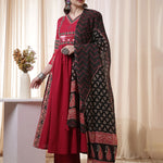 Rayon Calf Length Solid 3/4 Sleeves V Neck Flared Kurta Suit Set With Dupatta