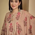Cotton Ankle Length Printed 3/4 Sleeve Key Hole Neck Anarkali Kurta Suit Set With Dupatta