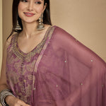 Rayon Ankle Length Printed Sleeveless V-Neck Anarkali Kurta Suit Set With Dupatta