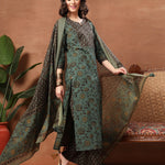 Straight Printed Cotton Round Neck Kurta Set With Dupatta