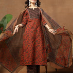 Straight Printed Cotton Round Neck Kurta Set With Dupatta