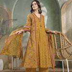 Flared Printed Cotton V-Neck Kurta Set With Dupatta