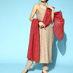 Women Gold Print Rayon Straight Kurta Pant Dupatta Set