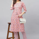 Women's Floral Print Cotton Straight Kurta Pant Set