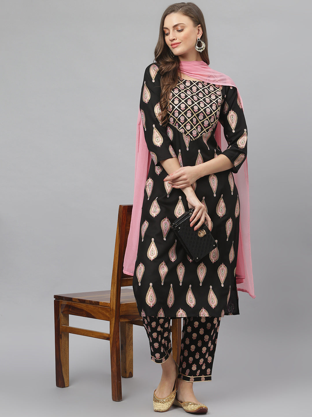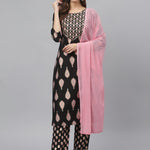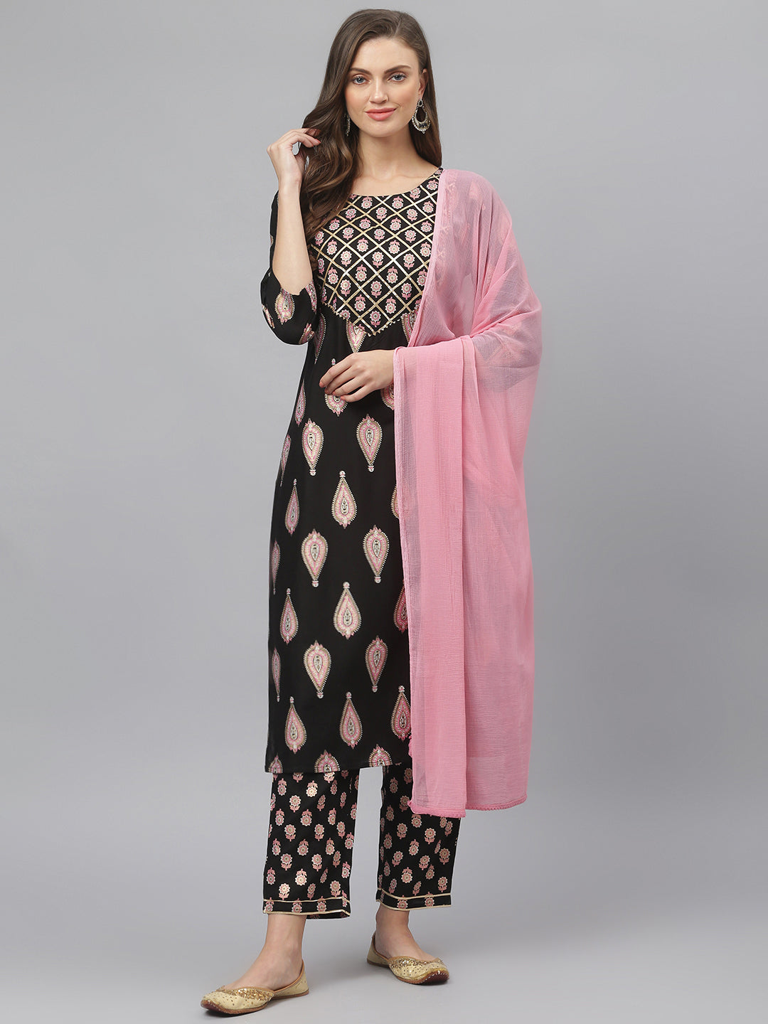 Women's Floral Print Rayon Straight Kurta Pant Dupatta Set