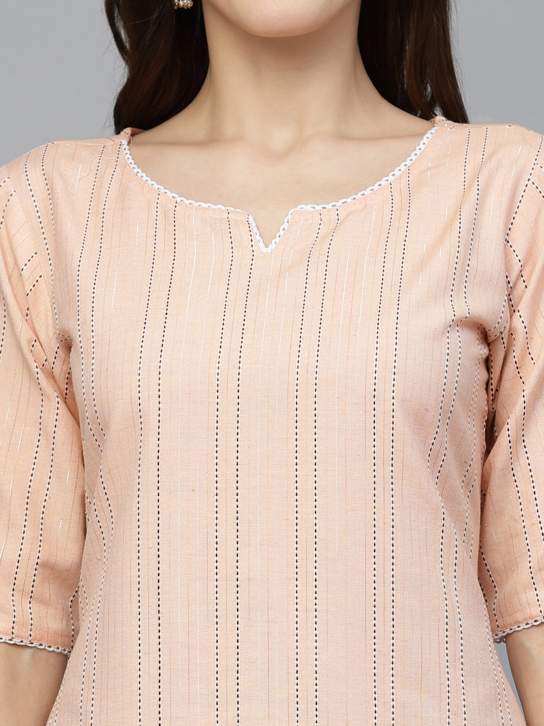 Self Woven Striped Cotton Blend Straight Kurta Pant Set