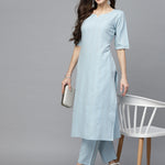 Self Woven Striped Cotton Blend Straight Kurta Pant Set