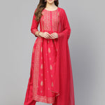 Gold Printed Rayon Naira Cut Kurta Pant Dupatta Set