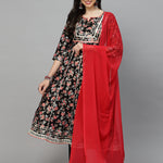 Floral Printed Rayon Anarkali Kurta Pant Dupatta Set