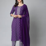 Floral Printed Rayon Straight Kurta Pant Dupatta Set