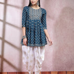 Printed & Embroidered Rayon Kurti with Dhoti Pant