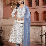 White Paisley Printed & Embroidered Silk Blend A-Line Kurta Pant Dupatta Set