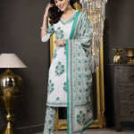 White Ethnic Motif Printed Cotton Straight Kurta Pant Dupatta Set