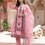 Pink Pakistani Solid & Embroidered Silk Blend Straight Kurta Pant Dupatta