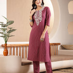 Magenta Woven Design & Embroidered Kantha Cotton Straight Kurta with Pant