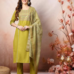 Embroidered Cotton Blend Straight Kurta Pant Dupatta Set