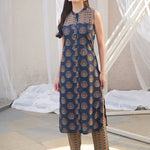 Blue Ajrakh Printed Cotton Straight Kurta Pant Set