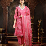 Pink Bandhani Printed Cotton Blend Straight Kurta Pant Dupatta Set