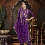 Voilet Printed & Embroidered Rayon Straight Kurta Pant Dupatta Set