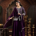Violet Embroidered Georgette A-Line Kurti Palazzo Dupatta Set