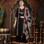 Black Solid Rayon A-Line Kurta Pant Dupatta Set