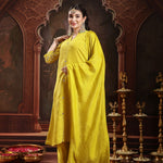 Lime Green Solid Silk Blend A-Line Kurta Pant Dupatta Set