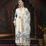 Blue Floral Printed Rayon Flared Kurta Palazzo Dupatta Set