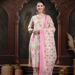 Blush Floral Printed Cotton Straight Kurta Pant Dupatta Set