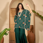 Green Bandhej Printed Crepe Kaftan Sharara Set