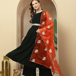 Women's Green Solid Velvet Flared Kurta Palazzo Dupatta Set