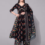 Cotton Printed Calf Length Semi-Flared 3/4 Sleeve V-neck Kurta Bottom Dupatta Set