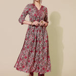 Rayon Printed Calf Length Semi-Flared 3/4 Sleeve V-neck Kurta Bottom Set