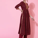 Rayon Printed Calf Length Semi-Flared 3/4 Sleeve Round Kurta Bottom Set