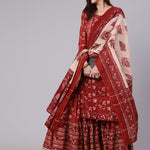 Cotton Calf Length Printed Straight 3/4 Sleeve Round Neck Kurta Bottom Dupatta Set
