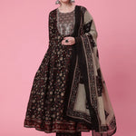 Cotton Calf Length Printed Flared 3/4 Sleeve Round Neck Kurta Bottom Dupatta Set