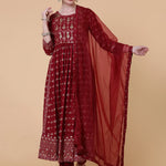 Rayon Calf Length Semi Flared 3/4 Sleeve Printed Round Neck Kurta Bottom Dupatta Set