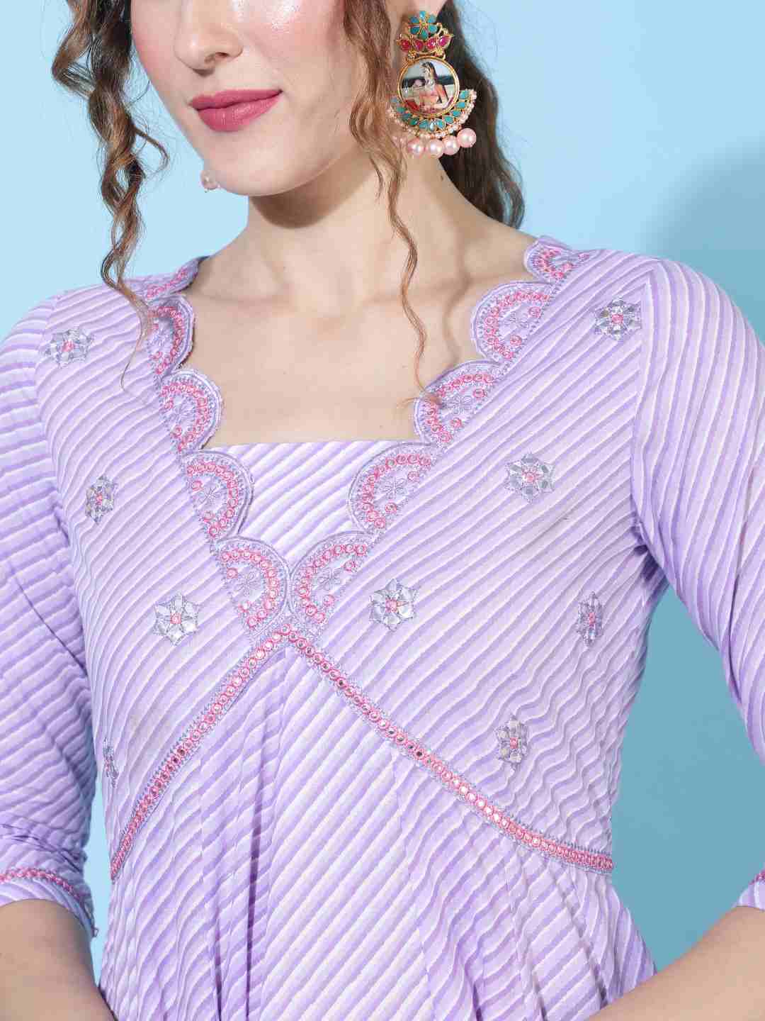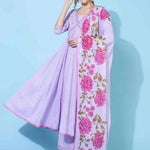 Cotton Calf Length Printed Flared 3/4 sleeves V neck Kurta Bottom Dupatta Set