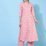 Rayon Calf Length Printed A-line 3/4 sleeves Round Kurta Bottom Set
