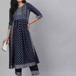 Rayon Calf Length A-Line 3/4 Sleeve Round Neck Foil Printed Kurta Set