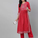 Rayon Calf Length A-Line 3/4 Sleeve Round Neck Foil Printed Kurta Set