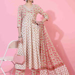 Rayon Calf Length Printed Flared 3/4 Sleeves Round Neck Kurta Bottom Dupatta Set