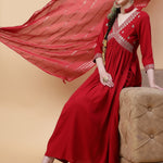 Rayon Calf Length Solid Flared 3/4 Sleeve V-Neck Kurta Bottom Dupatta Set