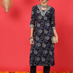 Rayon Calf Length Printed Straight 3/4 Sleeves V-Neck Kurta Bottom Set