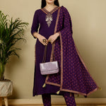 Rayon Calf Length Straight 3/4 Sleeves V Kurta Bottom Dupatta Set