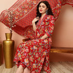 Cotton Calf Length Semi-Flared 3/4 Sleeves V Kurta Bottom Dupatta Set