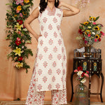 Cotton Calf Length Printed Straight Slveeless Collar Kurta Bottom Set