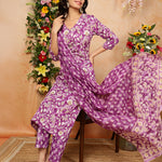 Cotton Calf Length Printed Straight 3/4 Sleeves V-Neck Kurta Bottom Dupatta Set