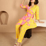 Cotton Hip Length Printed Asymmetric 3/4 Sleeves Shirt Coller Kurta Suit Set