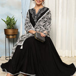 Rayon Calf Length Solid Flared 3/4 Sleeves V-Neck Kurta, Bottom With Dupatta